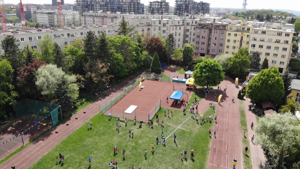 Děti využívají sportoviště přímo v areálu školy, který se průběžně modernizuje a rozvíjí. Využití máme atletický ovál, 2 tělocvičny, 2 posilovny, beach volejbalové hřiště či sauna.